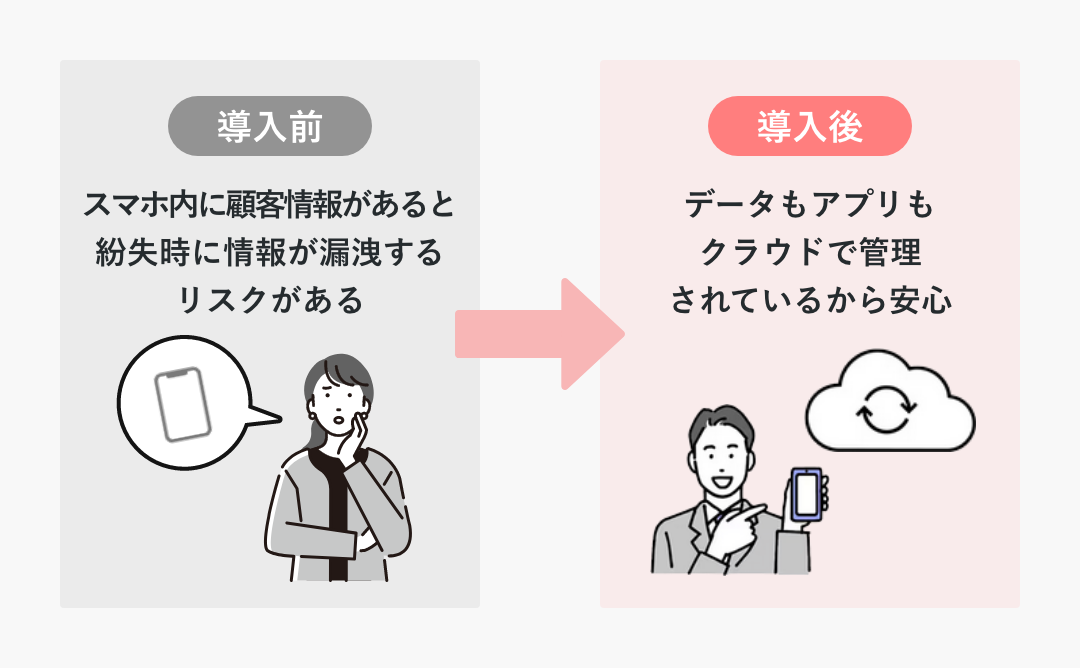 連絡先データやアプリがすべてクラウドで管理されているため、端末の紛失や盗難時も情報漏洩のリスクを最小限に抑えられます。