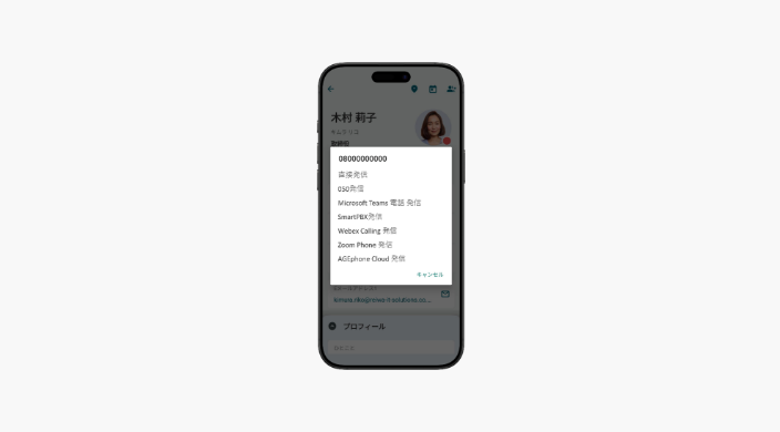 | スマートフォン連携 | 直接発信、着信時の名前表示(iOS、Android)、クイックダイヤル、各種発信方法対応(Webex Calling、Zoom Phone、AGE Phone、プレフィックス発信) | ● | ● | ● |