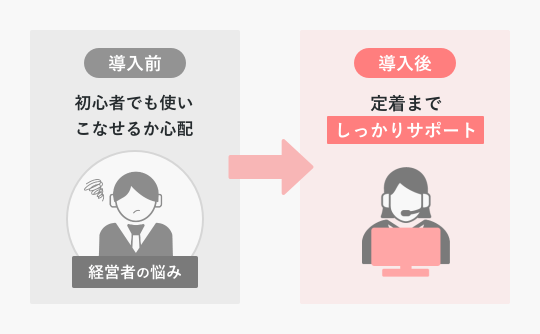 導入後は専任チームが徹底伴走します。従業員向け勉強会やテンプレート整備、管理者支援を通じて、現場での活用と定着化をしっかりサポートします。