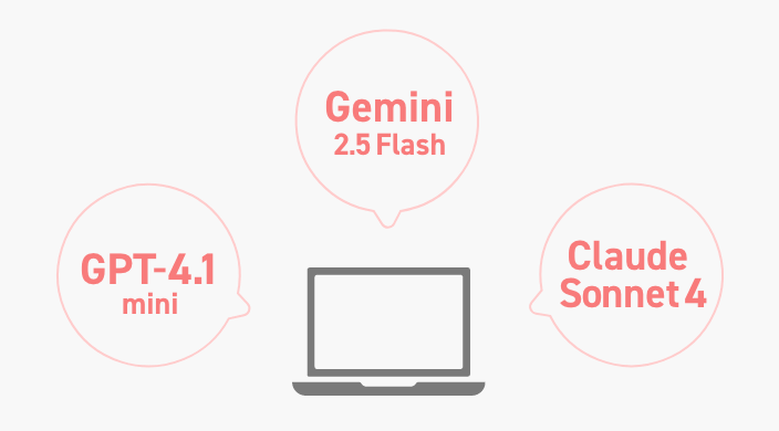 使い放題:GPT-4.1 mini / Gemini 2.5 Flash / Claude Sonnet 4